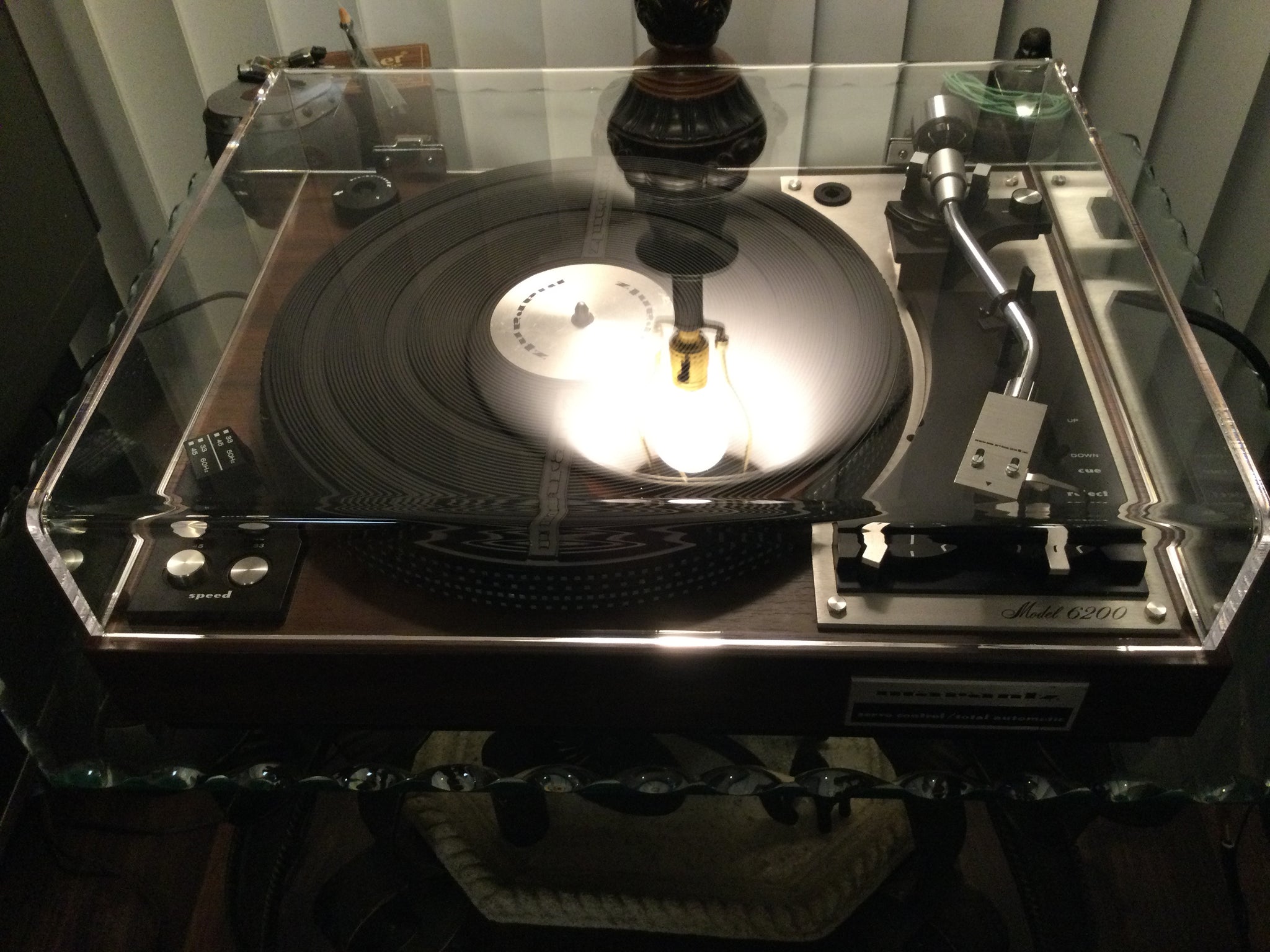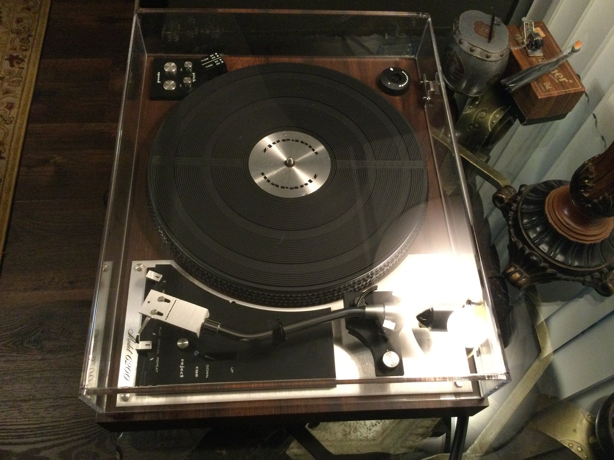 Hello, giving turntables another turn in the world is my passion. Check out my YouTube for hundreds of examples of my work. From the restoration to proper packing to insure you receive what you purchased there are no short cuts taken. For your consideration is this just about mint Marantz 6200 belt drive turntable that is fully working in every way. Serviced performed included internal clean, lube and adjustment along with flushing and Deoxit to the speed trimmers and board trimmers. Both speeds are accurate and steady and the trimmers are operational. Brand new platter belt just installed. The Marantz metal headshell has a Stanton cartridge along with it’s genuine stylus that shows little use. Aftermarket knock-off 45 adapter is included. Brand new aftermarket dustcover just installed. Brand new Switch Craft RCA’s just installed. See video and last picture for cosmetic flaws on the platter mat disc, these are in the original protective plastic film. I believe if the next owner chooses to remove the plastic film most if not all marks will disappear. Do note it’s there for a reason, if removed and the 45 adapter is used it will leave marks in the bare aluminum. Some assembly will be required therefore appreciate the experienced knowledgeable buyer. My other job and family go without when video calls are required for basic setup, balance of the arm and trouble shooting the buyers system. To this date the buyer hooking one of my turntables up to his MP3 player and inquiring why one channel was out is the best of all time. You can download the manual online from several sources or contact myself for assistance as a last resort if needed. Watch video by copy and paste! https://youtu.be/JRPlpY2Mxd8?si=UzeUkuhskQYyDP1W