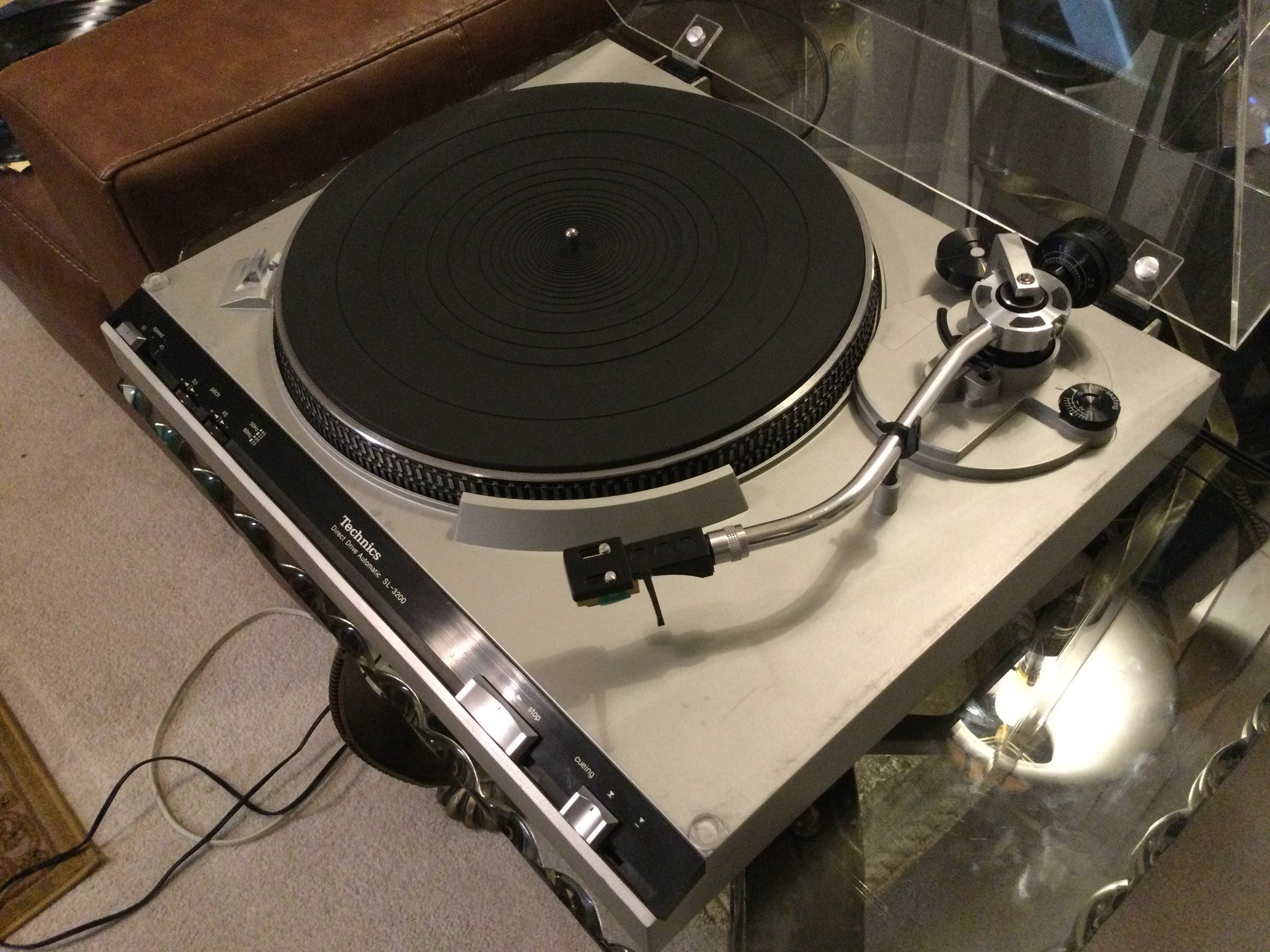 Hello, giving turntables another turn in the world is my passion. Check out my YouTube for hundreds of examples of my work. From the restoration to proper packing to insure you receive what you purchased there are no short cuts taken. For your consideration is this extra clean Technics SL-3200 direct drive turntable that is fully working in every way. Serviced performed includes lube and adjust to internal moving parts. Speed switch and trimmers were flushed and treated with Deoxit. Both speeds are accurate and steady and trimmers are operational. The headshell has an Audio Technica cartridge along with a new aftermarket stylus. Brand new dust cover just installed.  See last three pictures for cosmetic faults. Some assembly will be required therefore appreciate the experienced knowledgeable buyer. My other job and family go without when video calls are required for basic setup, balance of the arm and trouble shooting the buyers system. To this date the buyer hooking one of my turntables up to his MP3 player and inquiring why one channel was out is the best of all time. You can download the manual online from several sources or contact myself for assistance as a last resort if needed. . Watch video by copy and paste!       https://youtu.be/UIo4ePDcA14?si=NfiEWJOJgB0o7Fox